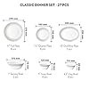 Classic Ceramic Dinner Set | 27 Piece for Family of 6 | Microwave & Dishwasher Safe | Bone-Ash Free | Crockery Set for Dining & Gifting | Plates & Bowls | White